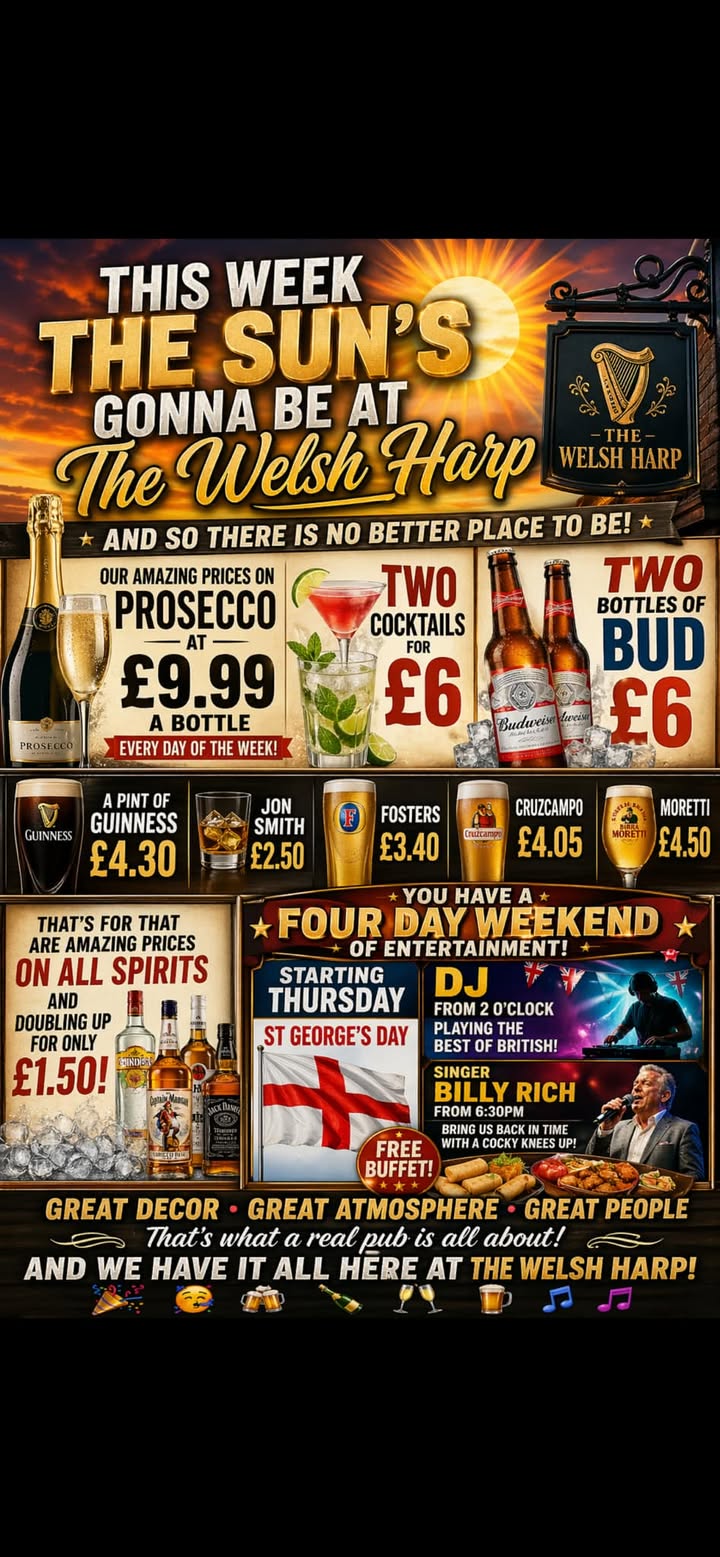We have a full weekend packed with entertainment for you & kicking it off tonight is Dean Kayne on the decks from 7 pm ๐ค๐ง๐ถ Saturday we have a very first hosted karaoke with Joanne Martin from 8 pm so warm up your vocals and come and join us ๐ค๐ถ๐พ๐ฅ๐บ Sunday from 2:30 pm we have Joanne Nyland singing live to all your favourite songs and the Sunโs gonna be out so there is no better place to be then the Welsh Harp and donโt forget our exceptional prices on all your drinks ๐ค๐ถ๐ง๐พ๐ฅ๐บ๐